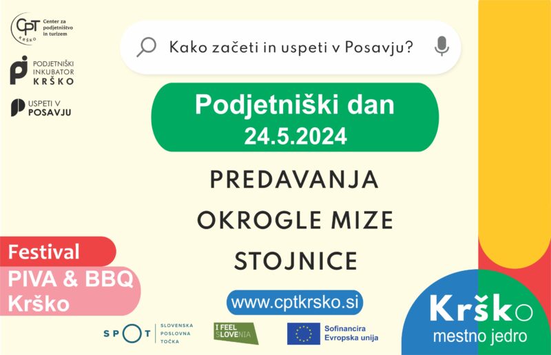 V okviru SPOT svetovanje Posavje in mentoriranje organiziramo in vabimo na zanimiva dopoldanska izobraževanja z okroglo mizo ter popoldansko druženje med podjetniki, ki se bodo predstavljali in mrežili na stojnicah pred inkubatorjem. Dogodek, izobraževanje, okrogla miza in mreženje, so namenjeni tako mladim kot potencialnim podjetnikom in delujočim podjetjem.