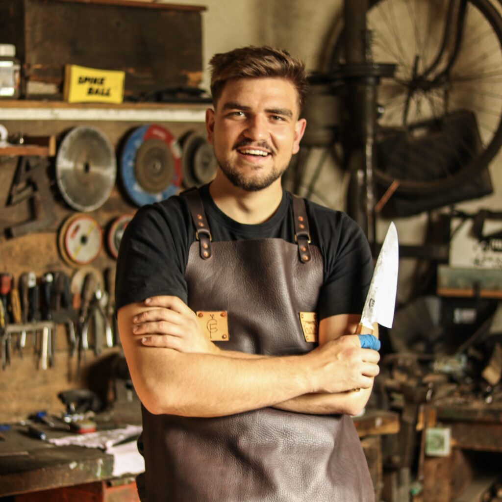 Lovro Jurečič je kovač iz Podbočja. Že njegov praded je bil kovač in njegovo znanje se je preko njegovega dedija preneslo nanj. Nože je začel izdelovati leta 2019 v upanju, da mu uspe naredit nekaj uporabnega, kakovostnega in navsezadnje lepega. Skozi učenje in izdelavo je ugotovil, da lahko s pomočjo nožev pripoveduje razne zgodbe in tradicije, ki so mu še posebej pri srcu. Iz vse te radovednosti je nastala Vorančeva kovačija, ki je zmnožek tradicije, kakovosti in rokodelstva.
